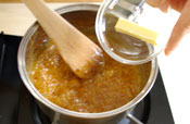 カリカリのキャラメルを作りたい場合は濃いカラメル色にして、 生クリームの量を減らすと出来ます。