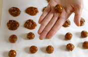 6. オーブンペーパーにスプーンで取り出します。 一粒大にしておく。