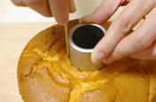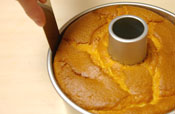 10. しっかり冷めたら、型からはずす。パレットナイフを型のふちに差込まわりをぐるりとはがす。 |