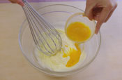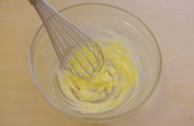 3. 常温の卵をときほぐし、3〜4回に分けて加える。 |