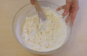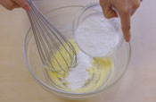 2. 砂糖を3回に分けてすり混ぜる。 |