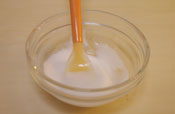 アイシングは粉糖に少しずつ水を混ぜる。水を入れすぎるとさらさらになってしまうので注意。 |