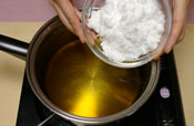2. 砂糖、湯、しょうゆ、塩を鍋に入れ沸騰したら火を止める。 |