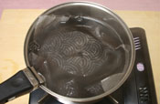 4. 中火にかけ、あくが出てきたらすくい取る。 |
