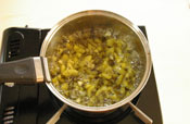 ![]() 2. グラニュー糖が溶けて水分が出たら中火にかけ、アクがでてきたら丁寧にアクをとる。 |