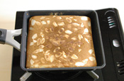 4. 1/2のアーモンドをフライパンに重ならないように並べて火をつける。 |