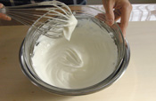 6. 生クリームにグラニュー糖を入れ氷水にあてて8分立てにする。 |