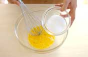 2. 卵を割りほぐし、グラニュー糖、塩をまぜる。 |