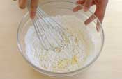 5. 薄力粉とベーキングパウダーをあわせてふるいいれ、なるべく捏ねないように混ぜる。 |