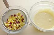 6. さつま芋の水気を切って加え、ゴムベラで混ぜる。 |
