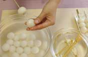 その他POINT 串を水につけておくと、おだんごがすんなり串にささります。 きれいな仕上がりになります。 |