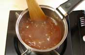 6. みたらしあんを作る。 お鍋に上白糖と片栗粉をお鍋に入れ混ぜて均一にしておく。 お水を入れ溶かしおしょうゆを入れる。 火をつけとろみがつき、透明感が出るまで火にかけて、煮詰めていく。