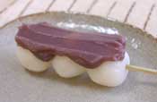 さらしあん さらしあんに砂糖を加え、調度良い硬さに調節する。(お湯でときのばす) おだんごにたっぷりのせて出来上がり! |