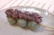 よもぎつぶあん よもぎだんごにつぶあんをたっぷりのせて出来上がり! つぶあんのおいしい煮方はこちらへ! |