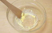 1. クランブルを作る。 無塩バターに塩を加え、柔かくしてきび砂糖を加え混ぜる。