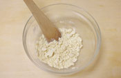2. ヘラで粉を混ぜ、そぼろを作る。