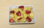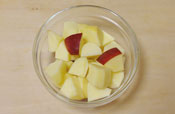 3. りんごは皮をむいて芯を取り、2cm角くらいに切り、重さを量る。 |