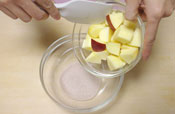 4. りんごの10%のグラニュー糖とシナモン(お好みの量)をボールに合わせりんごを加えて和える。 |