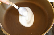 2. 柔らかくなったらグラニュー糖と水(半量程度)を少しずつ入れてとき伸ばしてゆく。