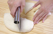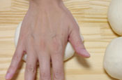 5. 手で軽く押さえガスを抜いて、板に取り出し、6等分に分割する。プティパンの作り方14・15・16を参考に丸め、休ませる。 15分〜20分程度。