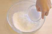 1. ボールに薄力粉をふるい入れグラニュー糖を合わせる。 |