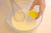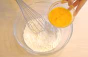 2. 溶いた卵を1に加え、ホイッパーで混ぜる。 |