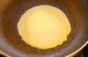 直径15センチ位の円にする。 ふちが茶色になったら裏返す。 返したら10秒程度でできあがり。お皿に取り出す。焼きすぎるとパリパリになってしまします。 7枚前後焼けます。 |