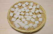 1. お餅を一口大にカットして、ざるに並べ乾燥させる。