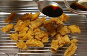 3. 全体が狐色に揚げあがったら、お好みの調味料で味付けする。