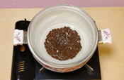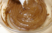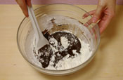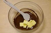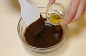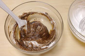 5. 生地を作る。 オーブンを180度に予熱しておく。 チョコレートをボールに入れ湯煎にかけ溶かす。 |