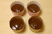 12. ガナッシュの上から生地をかぶせるように6〜7分目までを入れる。 180度のオーブンで16分くらい焼いて出来上がり。