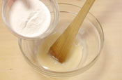 2. やまいもの摩り下ろしたものに、上白糖を入れ木ベラで混ぜる。