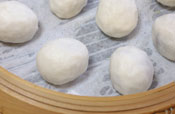 7. 包んだら少し俵型に成型して、蒸し器に並べる。