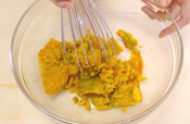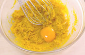 5. 混ざったら、卵黄を入れさらに混ぜる。 お好みでシナモンを入れる。 |
