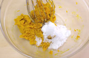 4. 塩と上白糖を入れ、混ぜる。 |