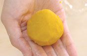 手でやっと丸められる位の硬さに調節してください。 |