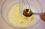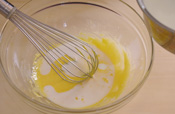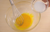 3. ボールに卵黄を割りほぐし、グラニュー糖を半分入れすり混ぜる。 |
