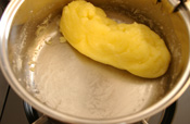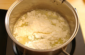 2. バターが溶け、沸騰したら火からおろし粉を加える。 |
