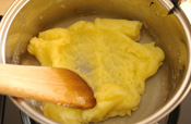 6. 木べらでたっぷりすくってやっと落ちるくらいの固さに調節する。 |