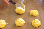 7. 天板に小さなスプーンで落としていく。 3センチ位のこんもりとしたドーム状にする。