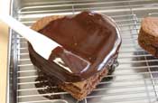 12. 網の上にのせ更に上からチョコレートクリームを全体にかける。 サイドはスプーンなどでぬる。