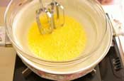 湯煎にかけ、温まってきたら湯煎からはずし泡立てる。 |