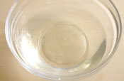 5. ゼラチンのお水を切り、耐熱容器にいれる。 500wのレンジに約15秒くらいかける。(溶けたらやめる。沸騰させないようにする。)