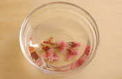 8.シロップを作る。 桜の塩漬けを水洗いし5分程度塩抜きをする。 |