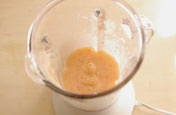 2. 桃の実(半割を3つくらい約200g)とイチゴ(3粒程度)をミキサーにかけピュレ状にする。