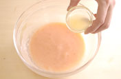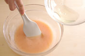 3. ボールにピュレ移し桃の缶づめのシロップを混ぜ入れ、ピュレを300gに調整する。