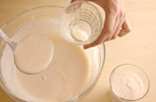 7. カップに注ぎ、冷蔵庫で冷やし固める。 |