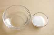 9. 耐熱容器にお水とグラニュー糖を入れレンジにかける。 グラニュー糖が溶けたら止める。 (お鍋で火にかけててもよい。グラニュー糖が溶けたら止める)