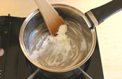 1. 白玉粉、砂糖、水を鍋に入れ白玉粉が溶けたら中火にかけて練る。 |