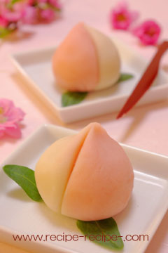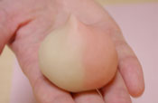 7. 手で丸めなおして、先をとがらせ桃の形に整える。 |